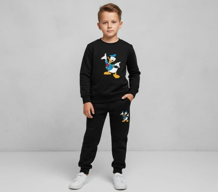 Keep your little one warm and stylish with the Kids Printed Black & Black Tracksuit Set. Made from premium quality fleece, this 2-piece winter outfit includes a cozy sweatshirt and matching trouser that provide superior comfort and insulation. The PLAYBOY printed design adds a fashionable edge, perfect for trendy boys and girls. Ideal for school, casual wear, or outdoor play, this tracksuit keeps your kids comfortable, confident, and fashion-forward all season long.